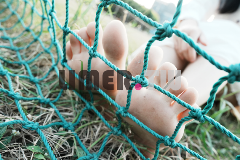 新人女孩深夏初曝光,在午後陽光下草地上散步,走過球場、水泥地停車場時還開心地飛了起來;