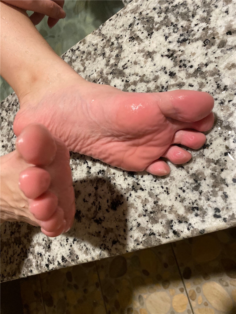 40度的溫泉 身體血液循環加速使腳底整個紅通通的 嫩白的肌膚配上紅潤的腳底,令人垂涎三尺