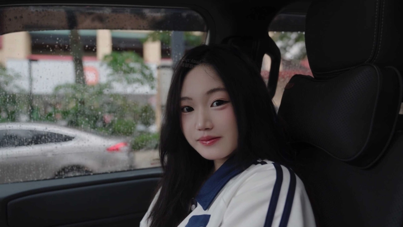 清纯女同学既视感,她还做了葡萄紫猫眼美甲,结合起来很反差。