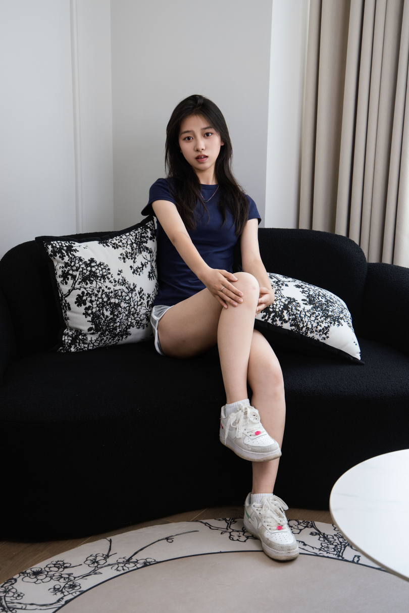 足愉心摄影第58期:模特青青(搭配:藏蓝色T恤、灰色短裤、白棉袜、滑板鞋、裸足)