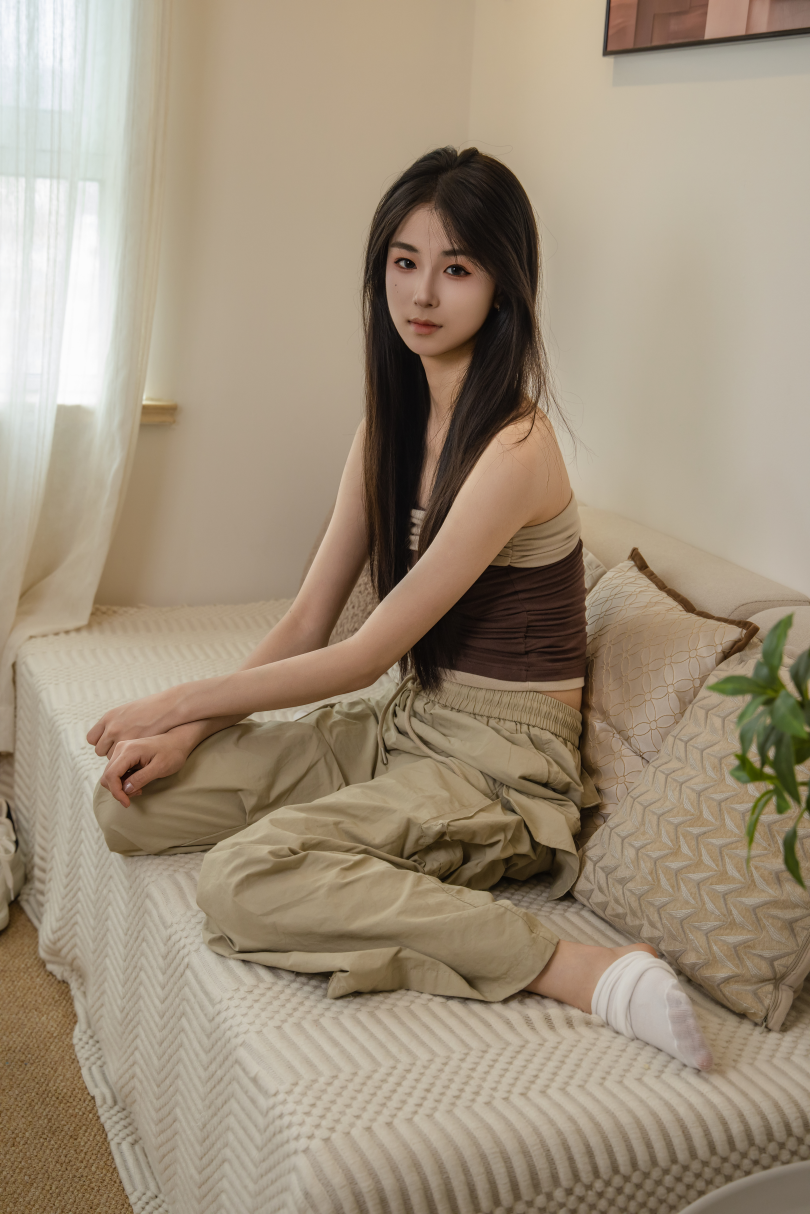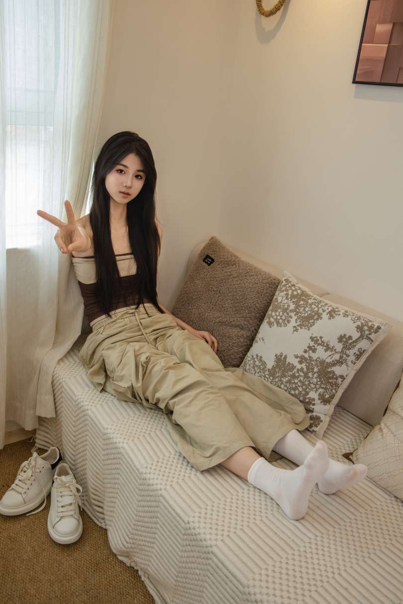 足愉心摄影第53期:模特小瑶(搭配:棕色抹胸、工装裤、白棉袜、滑板鞋、裸足)