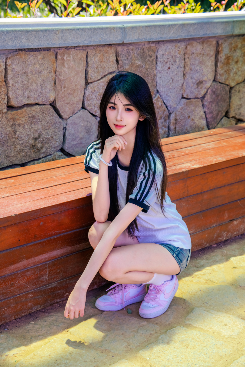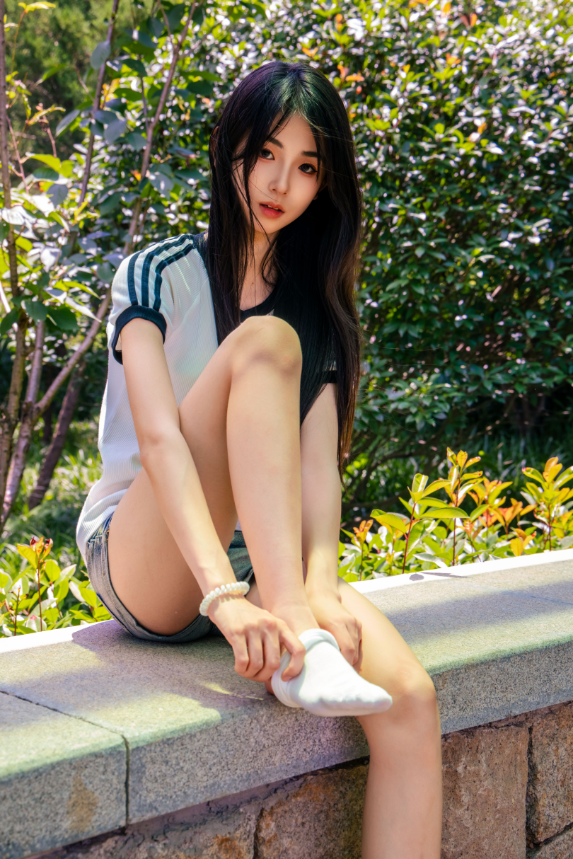 足愉心摄影第51期:模特小瑶(搭配:T恤、牛仔短裤、白棉袜、帆布鞋、裸足)