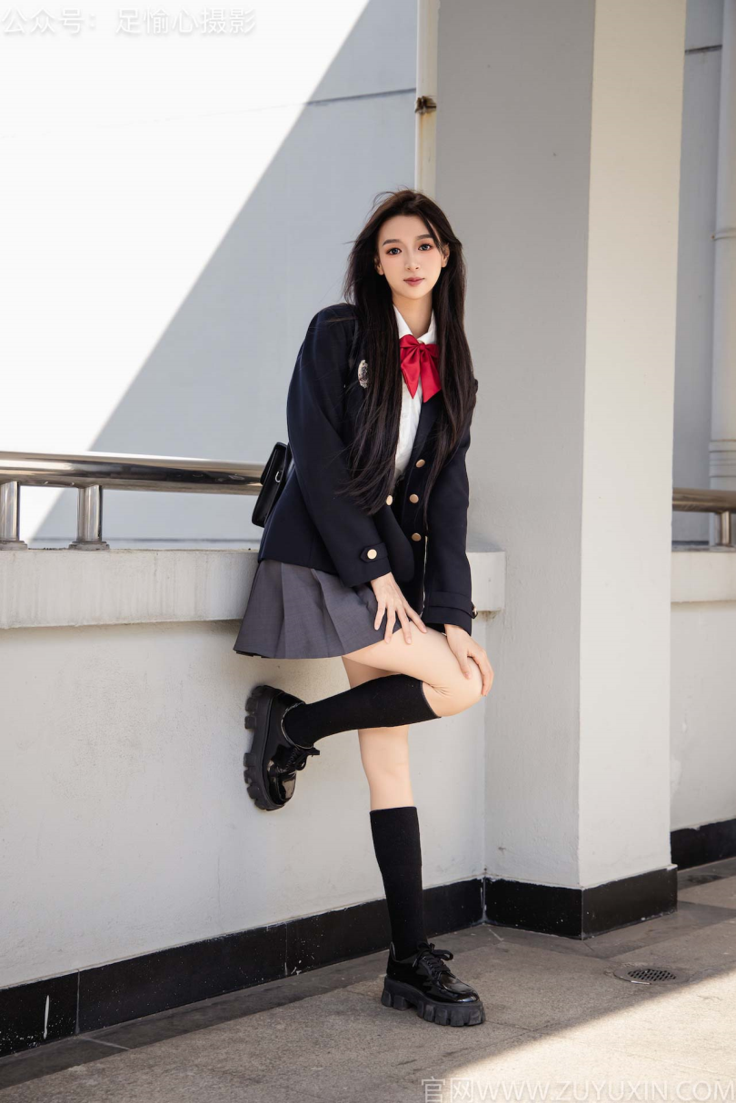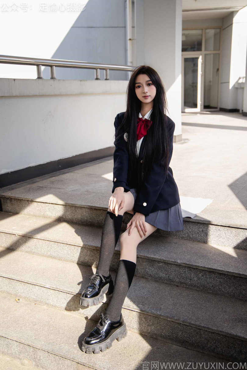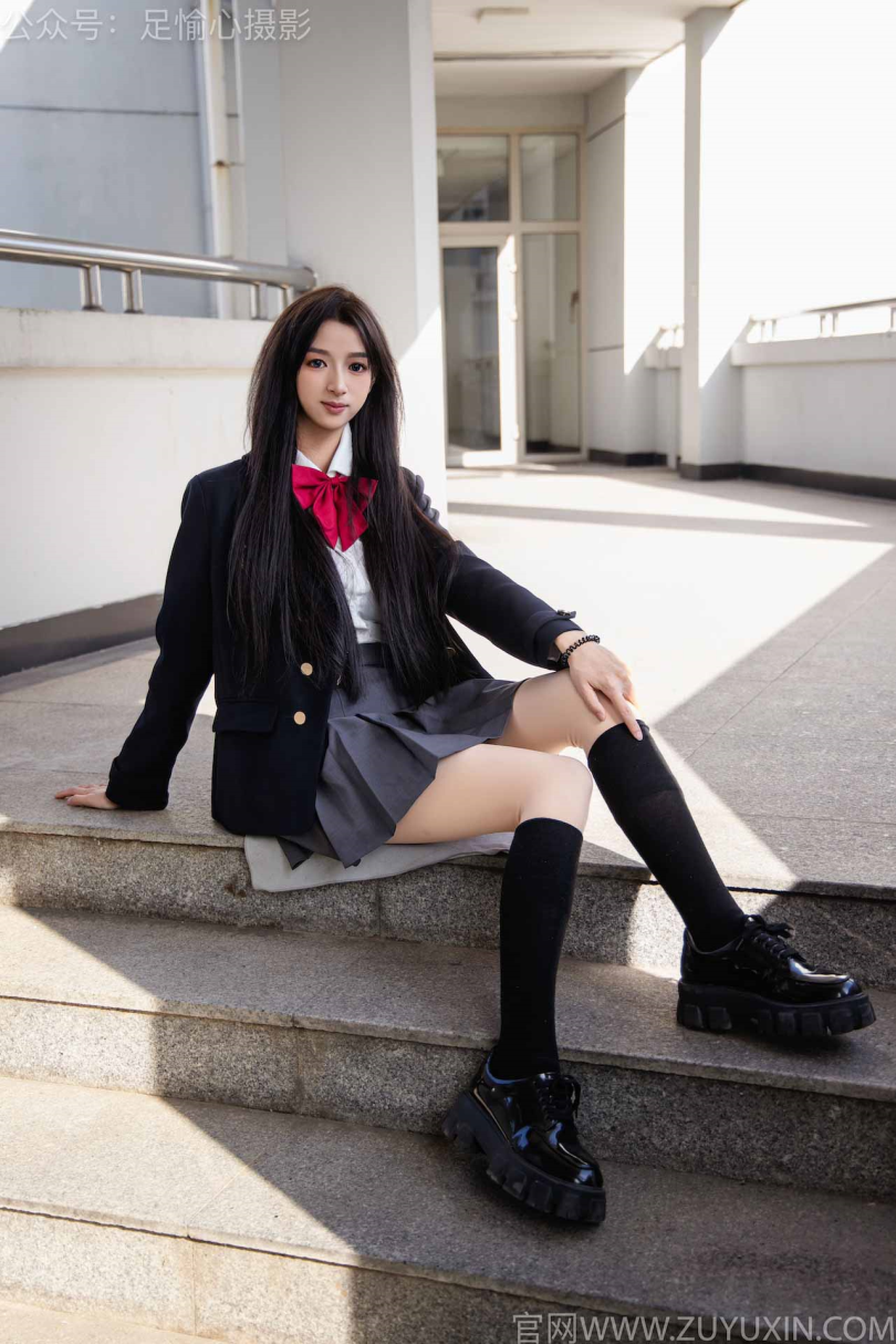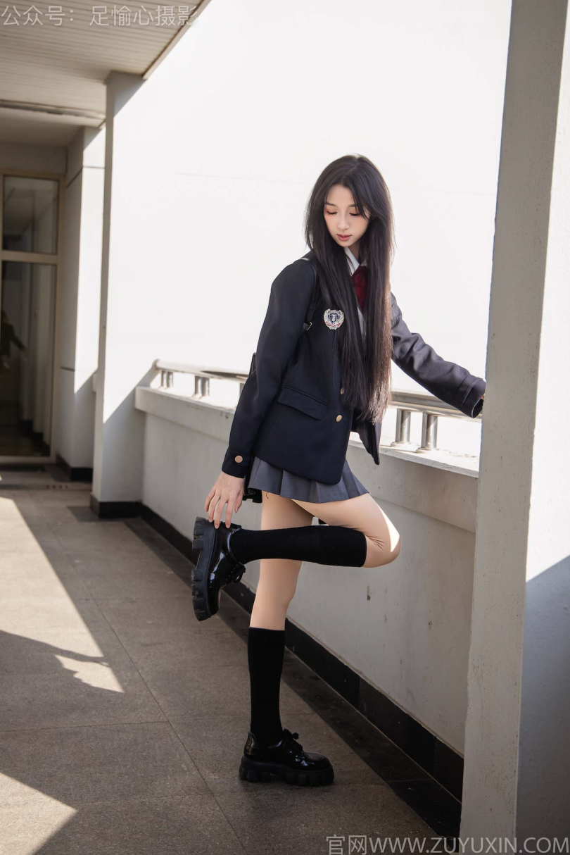 足愉心摄影第6期:模特云悦(搭配:JK制服、皮鞋、黑色长筒袜、肉色踩脚袜、裸足)