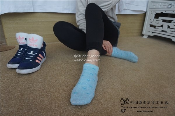【Student Model】女神太阳Adidas+蓝色棉袜+船袜+裸足展示
