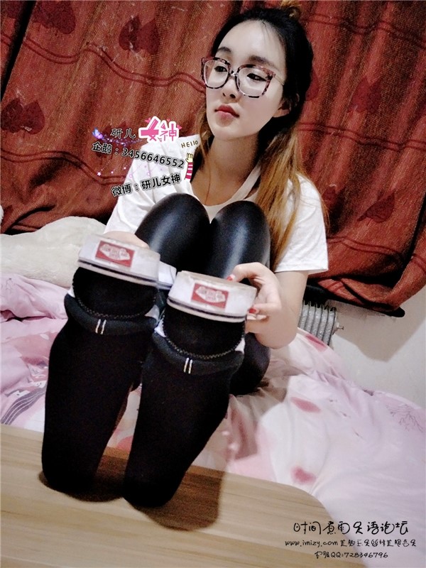 › 【研儿女神】黑色棉袜+豹纹船袜