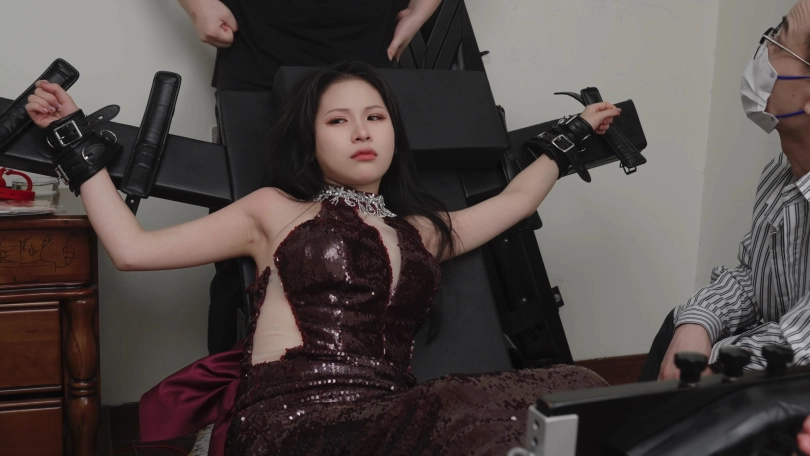 【脚模摄影】079艾米酒红礼服束缚TK竟然挠哭了4K中字