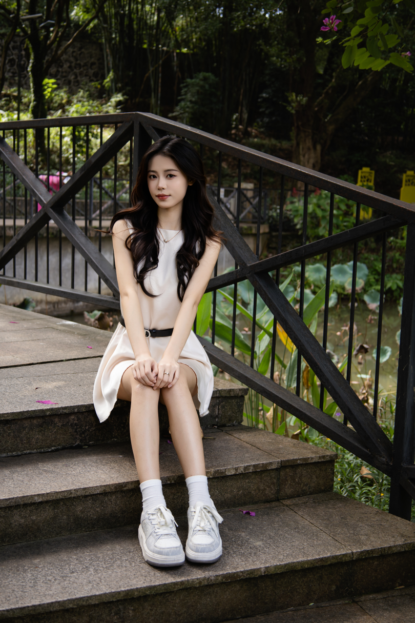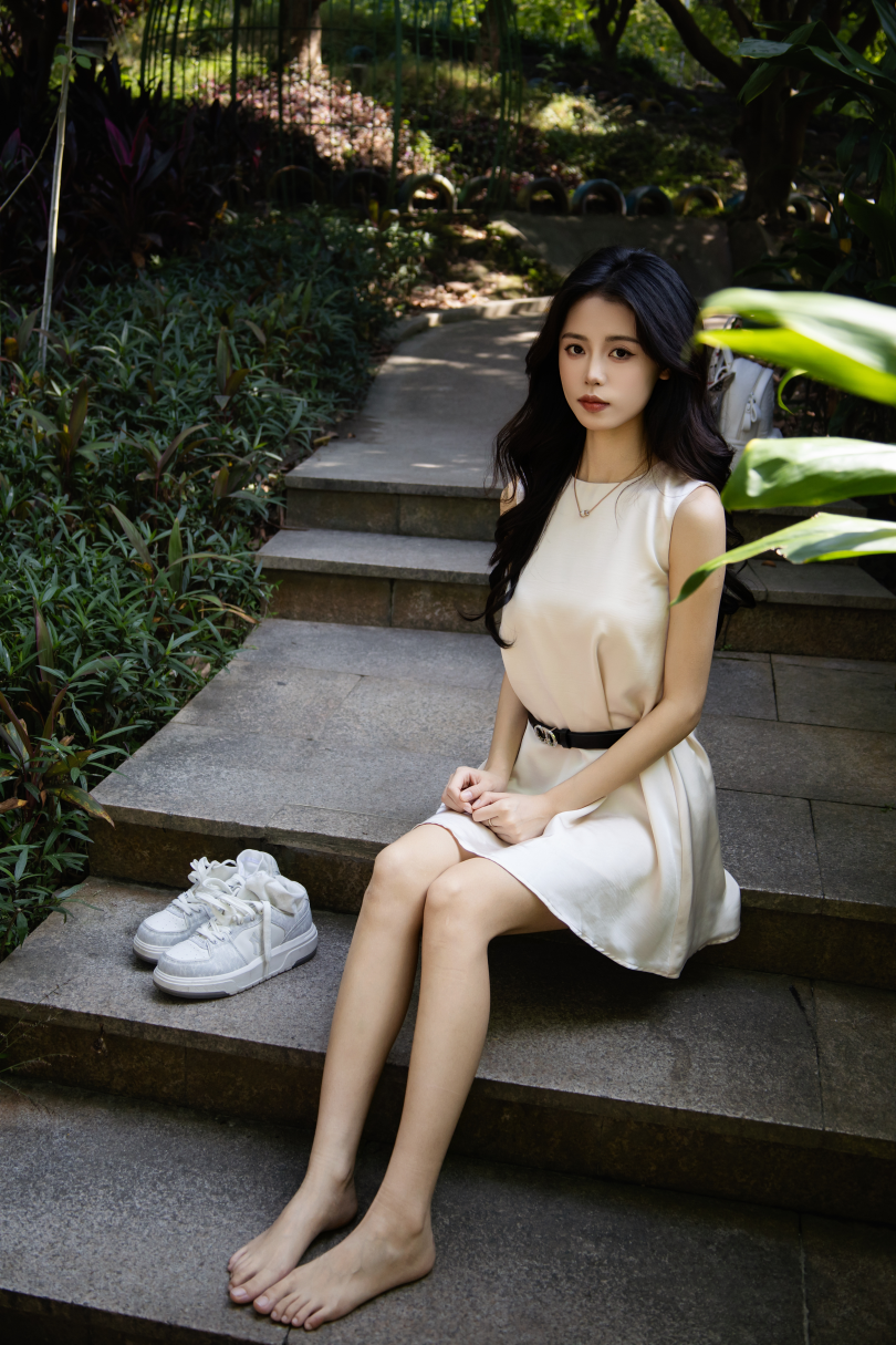 足愉心摄影第82期:模特夏沫(搭配:白色连衣裙、白色板鞋、白色棉袜、裸足)