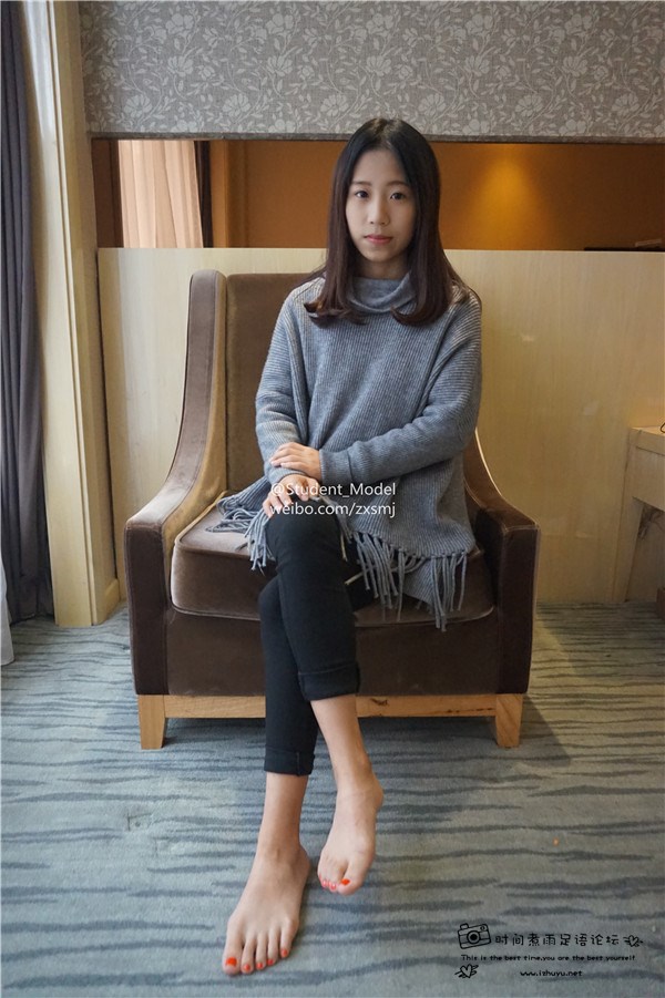【Student Model】宾馆baba红色甲油大脚趾私摄,黄色棉袜