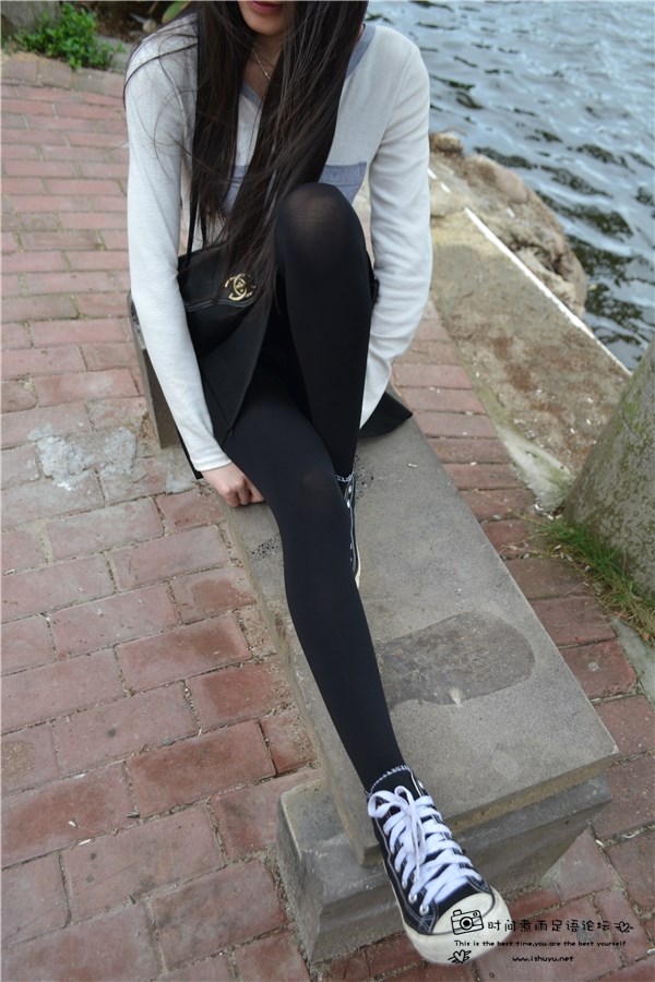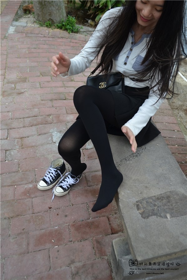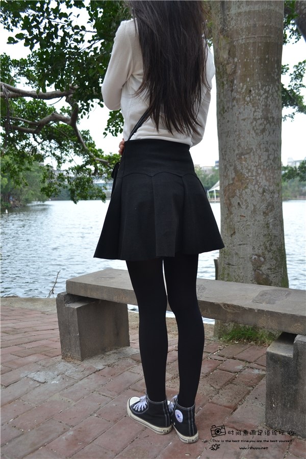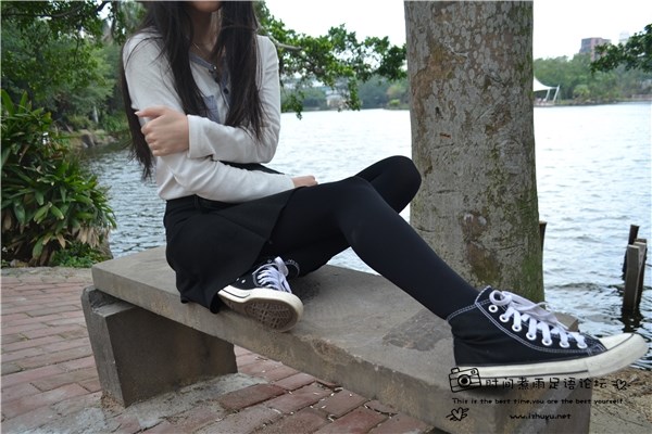 南湖公园拍摄的高校清纯女神黑丝连裤袜帆布鞋,脱鞋展示黑丝美脚,美腿修长脚型优美