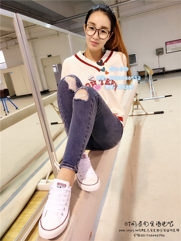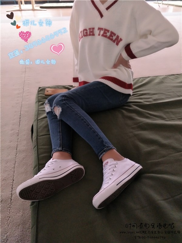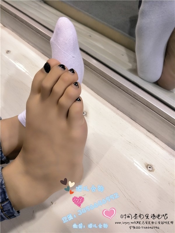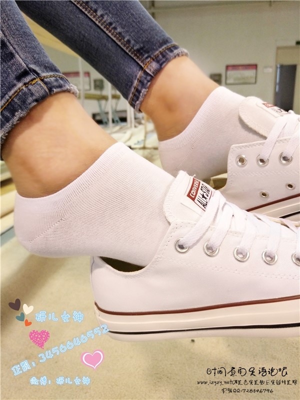 【研儿女神】首度露脸,白帆布鞋+白棉袜+裸足,黑色甲油搭配研儿的美脚真是好看呢
